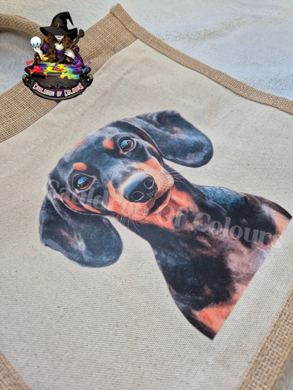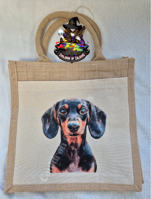 Pawsitively perfect for dog lovers, this laminated jute bag boasts a dachshund design (placement may vary). With a spacious 30 x 30 x 19 cm size, it's perfect for picnics, summer outings, and even carrying dog treats on walks and day trips. No bones about it, this bag is a must-have for any dog enthusiast!